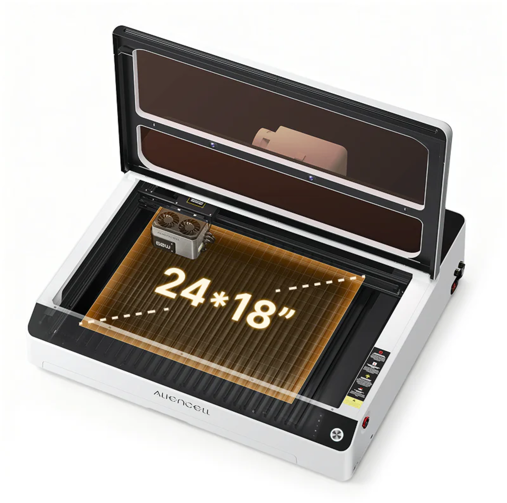 Con una superficie de trabajo de 24 x 18 pulgadas, la Aliencell X1 ofrece espacio suficiente para una gran variedad de proyectos, desde planchas individuales hasta la producción en serie. La gran superficie de trabajo garantiza la máxima flexibilidad en cuanto al tamaño del material y la complejidad del diseño.