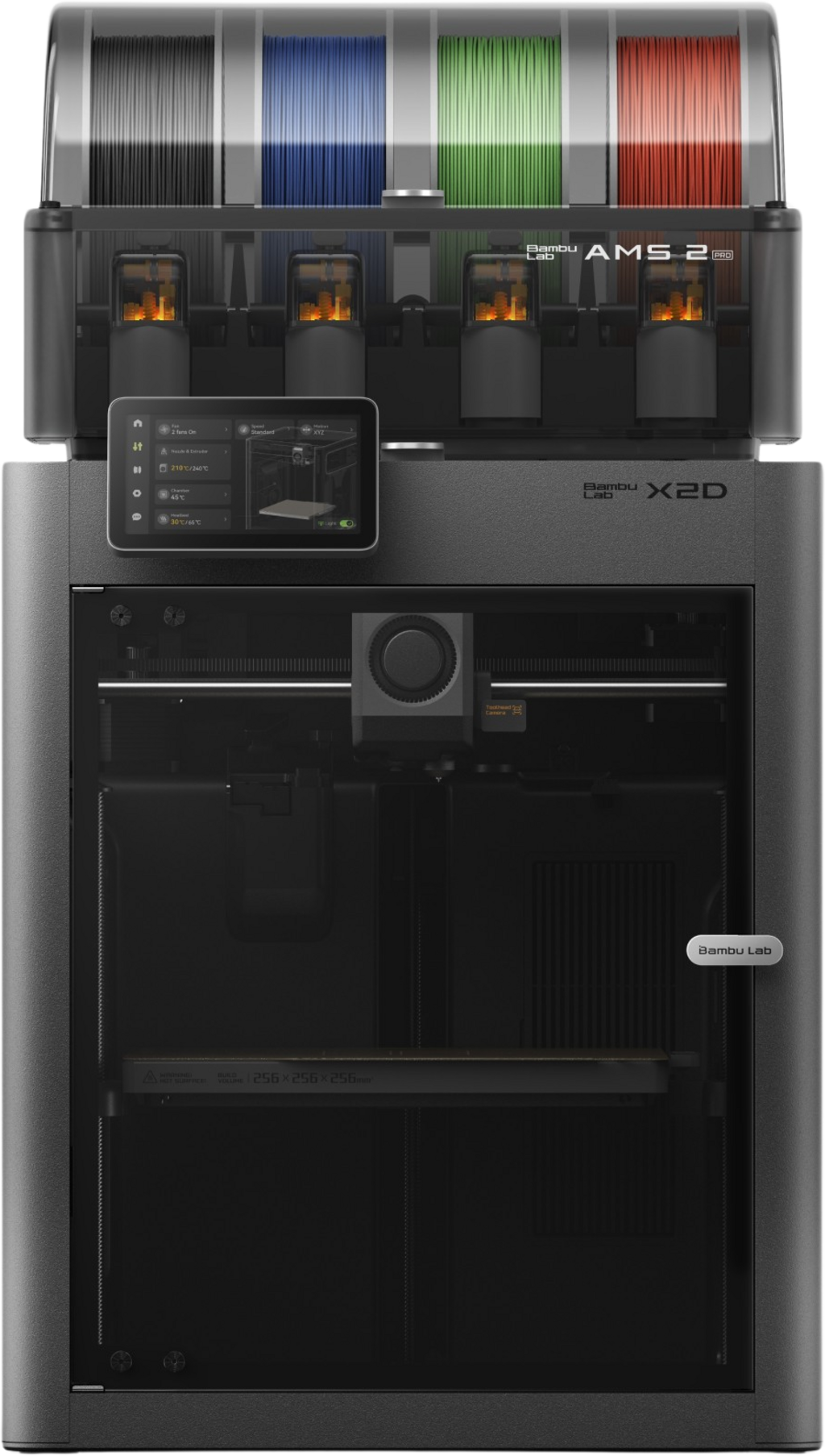 Bambu Lab AMS 2 Pro es un avanzado sistema multimaterial que combina la gestión automatizada del filamento, el cambio rápido de material y el secado integrado en un solo sistema. Reconoce automáticamente el filamento utilizado, cambia de forma autónoma de un material a otro y garantiza unas condiciones óptimas durante todo el proceso de impresión.