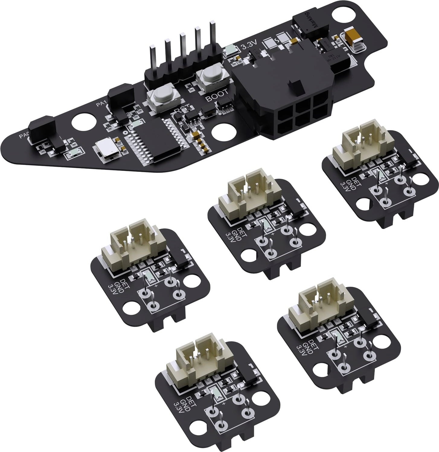El Kit de PCB KMS de BTT es un sistema de control modular de alto rendimiento diseñado para gestionar configuraciones de impresión multicolor. Desarrollado en colaboración con los proyectos de código abierto KMS y Happy Hare, ofrece una integración inmediata y lista para usar con configuraciones multimaterial existentes, incluyendo los sistemas Happy Hare V3 y Tipo B.