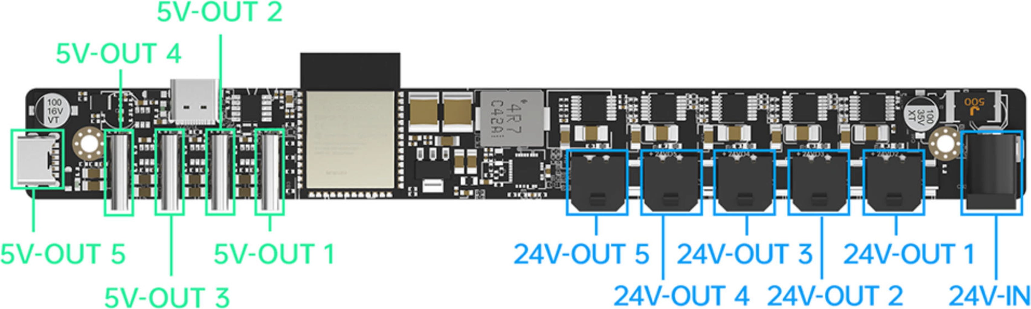 | Puertas de salida | 1 USB-C (5 A) 4 USB-C (1,5 A) 5 Mx3.0 de 2 pines (2 A) |