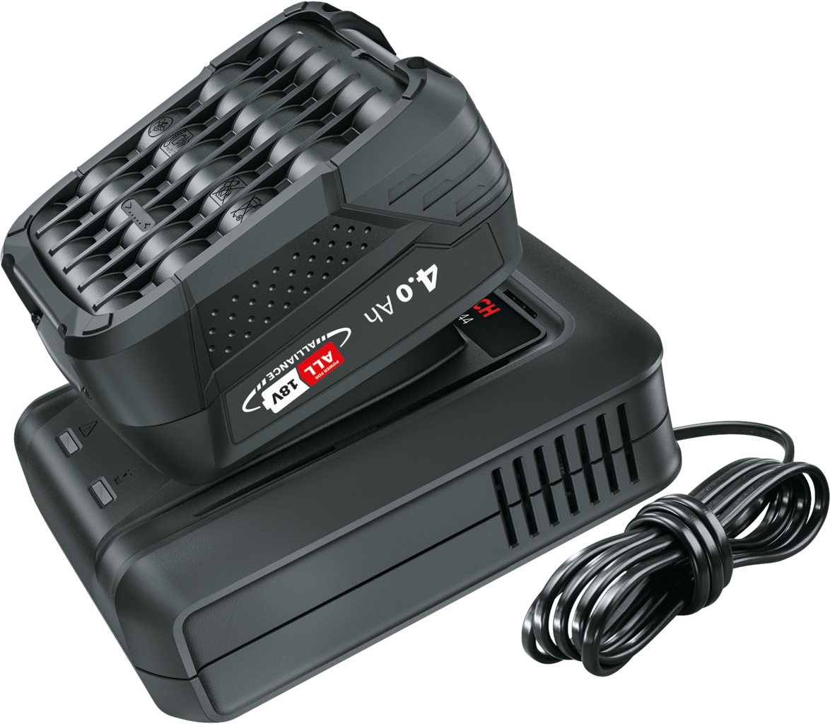 El Startter Set 18V es apto para todas las herramientas Bosch Home & Garden con voltaje de 18 V. El set incluye una potente batería de iones de litio de larga duración y un cargador con un rendimiento fiable. El cargador tiene un indicador de listo para usar que se ilumina en verde al 80% de carga e indica que la batería está lista para su uso.