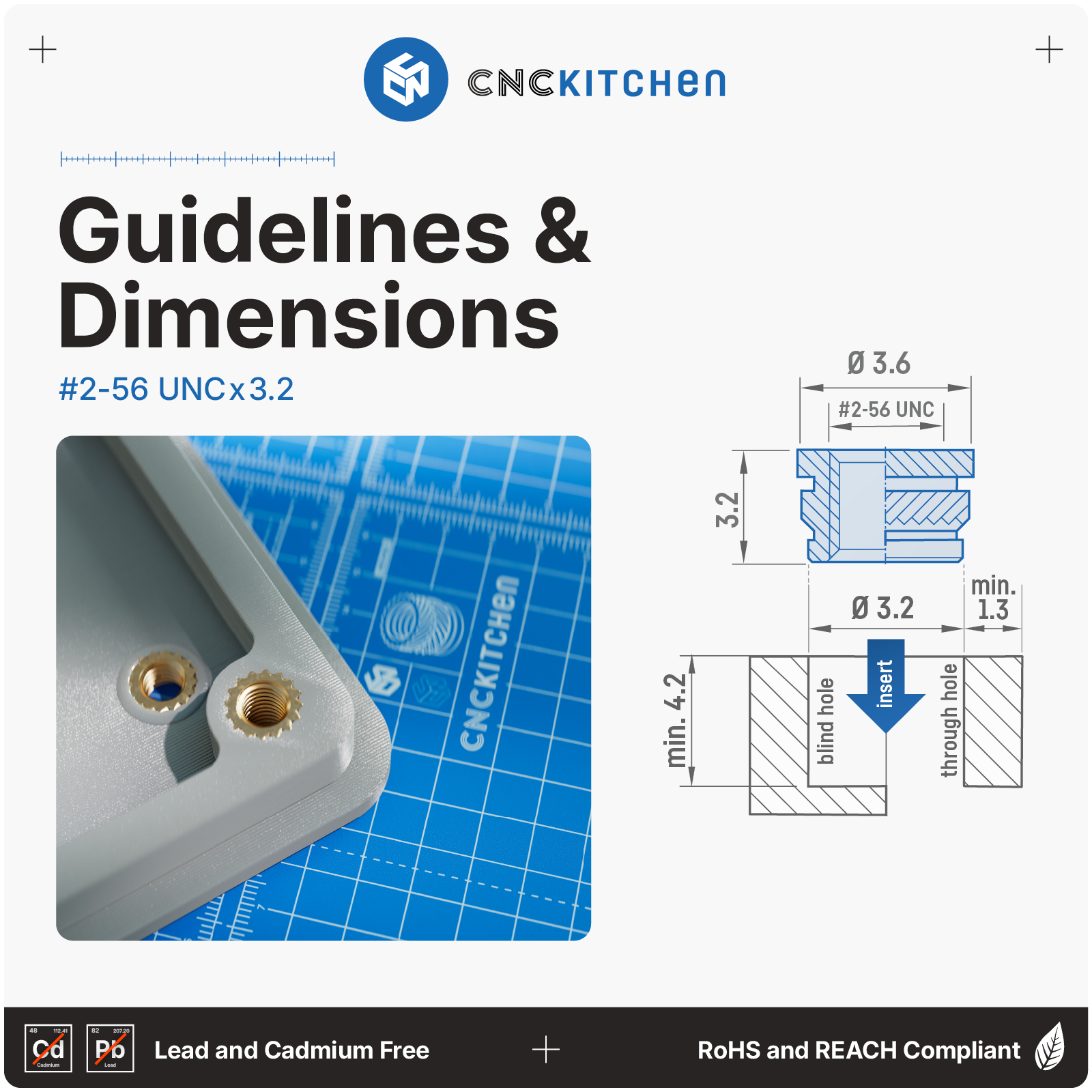 CNC Kitchen Inserto Roscado #2-56 UNC, #2-56 x 3.2 (100 unidades)