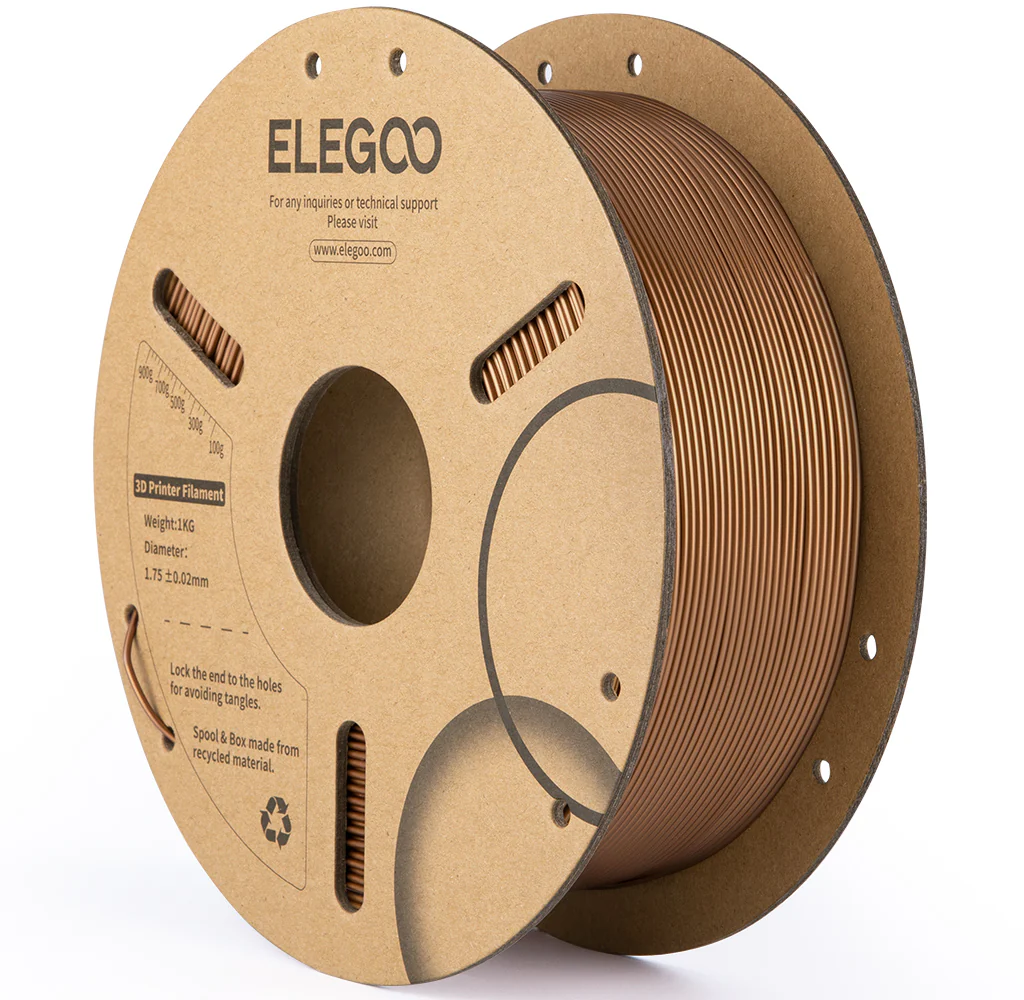 PLA Bronze Filled de Elegoo es un filamento PLA especial enriquecido con partículas de bronce auténtico. De este modo, tus impresiones no sólo tienen un auténtico aspecto metálico, sino que también ofrecen una sensación táctil especial y un peso ligeramente superior, lo que hace que los modelos sean más realistas y de mayor calidad.