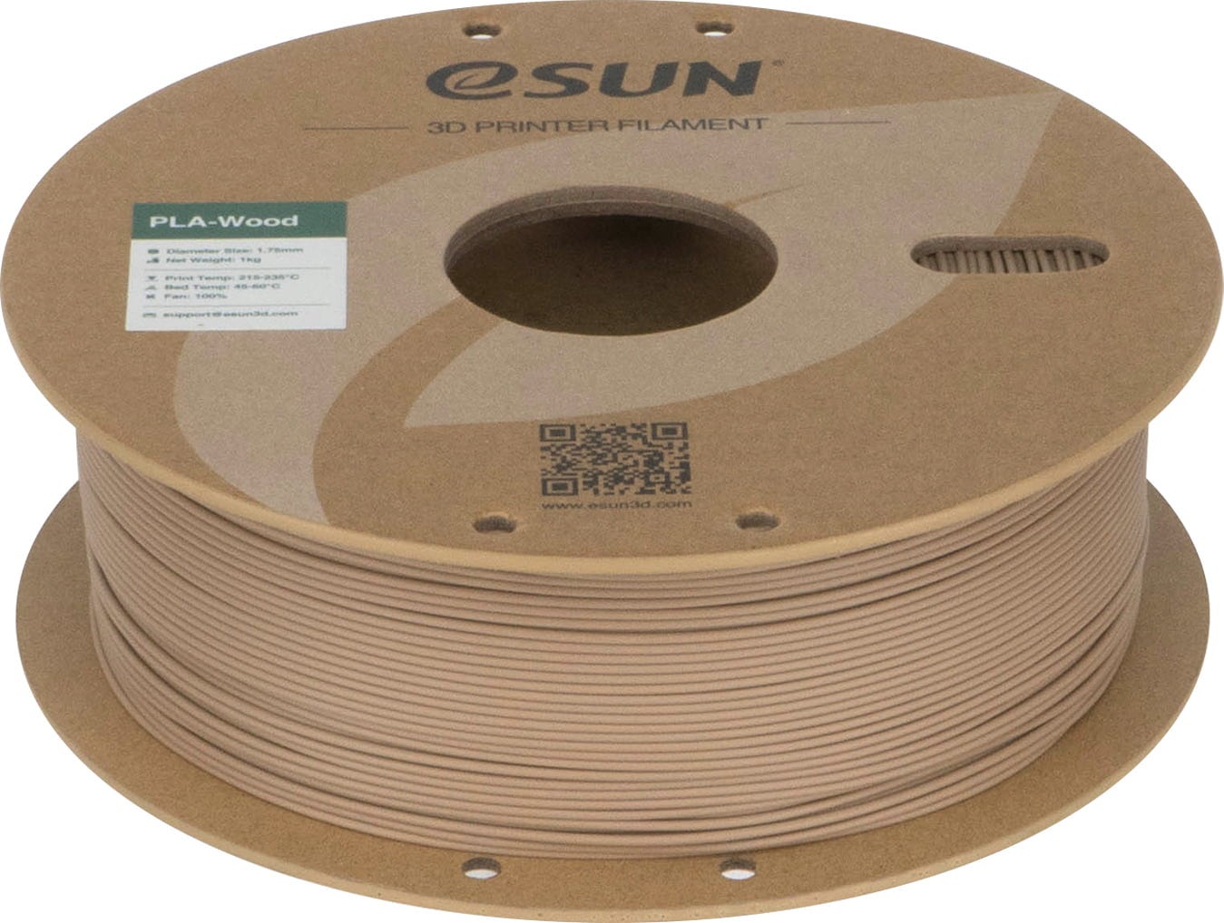 eSUN Wood es un filamento de impresión 3D estético con efecto madera basado en PLA, ideal para proyectos de artesanía, jarrones y cualquier otro objeto impreso que pueda beneficiarse de un aspecto similar a la madera.