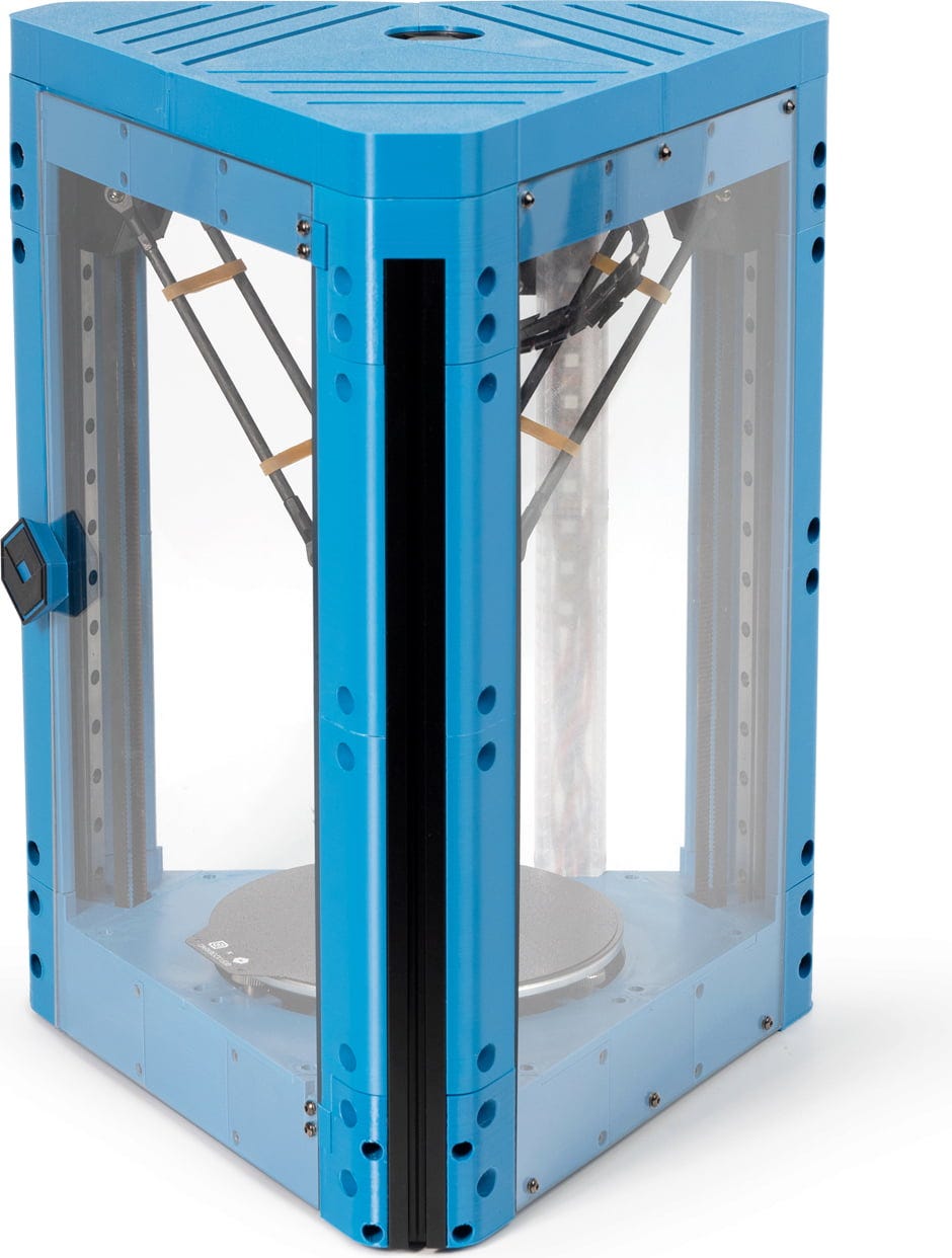 Con un volumen de impresión circular de 115 × 115 mm, la Delta Flyer ofrece espacio suficiente para modelos pequeños, prototipos funcionales y componentes técnicos, manteniendo al mismo tiempo un tamaño reducido. La estructura ligera pero robusta, fabricada con perfiles de aluminio 2020, garantiza estabilidad y rigidez incluso a altas velocidades.