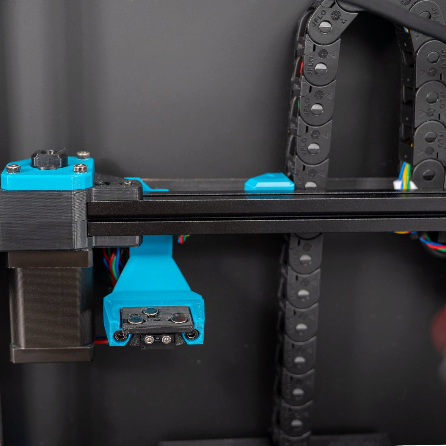 Los rodillos vivos en los ejes X/Y y los pasadores de precisión para las poleas ABZ optimizan la tensión de la correa, mejorando la precisión dimensional incluso durante la impresión a alta velocidad.