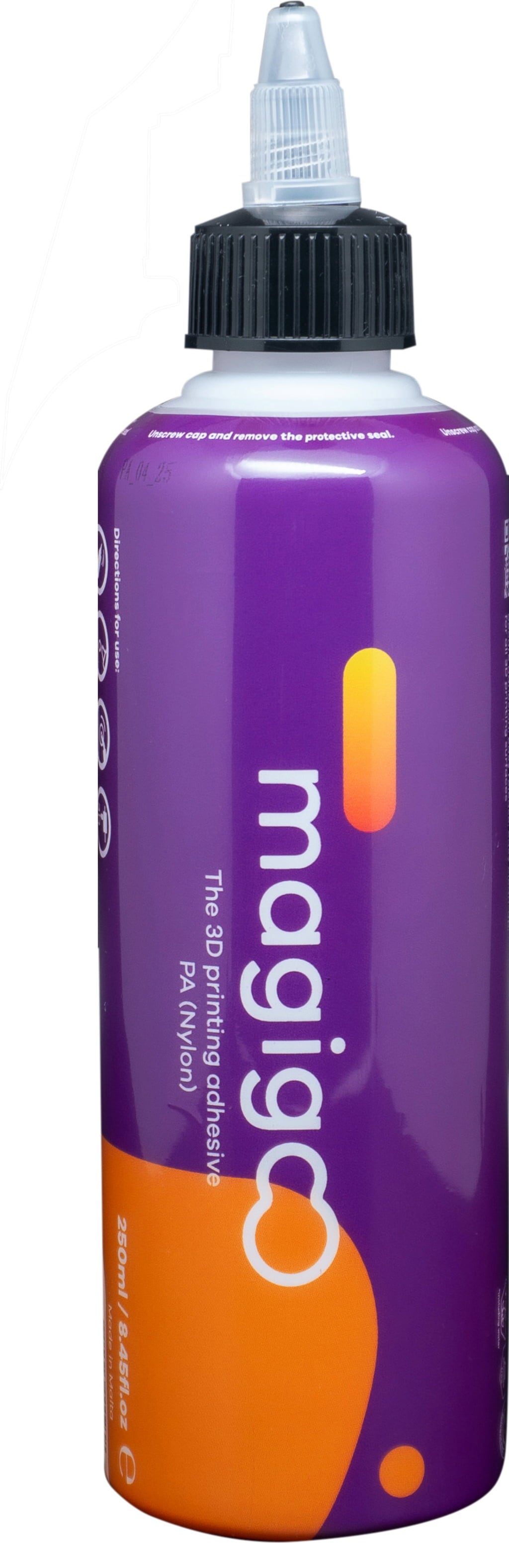 Magigoo Glide PA es un adhesivo especializado para lechos de impresión de la serie Pro, desarrollado para el procesamiento fiable de filamentos de poliamida (nailon). Incluye tipos clásicos como PA6, PA12 y PA66, así como variantes reforzadas con fibra como PA-CF o PA-GF. Estos materiales suponen un reto especial en la impresión 3D FDM debido a su elevada contracción y baja adherencia a la superficie.