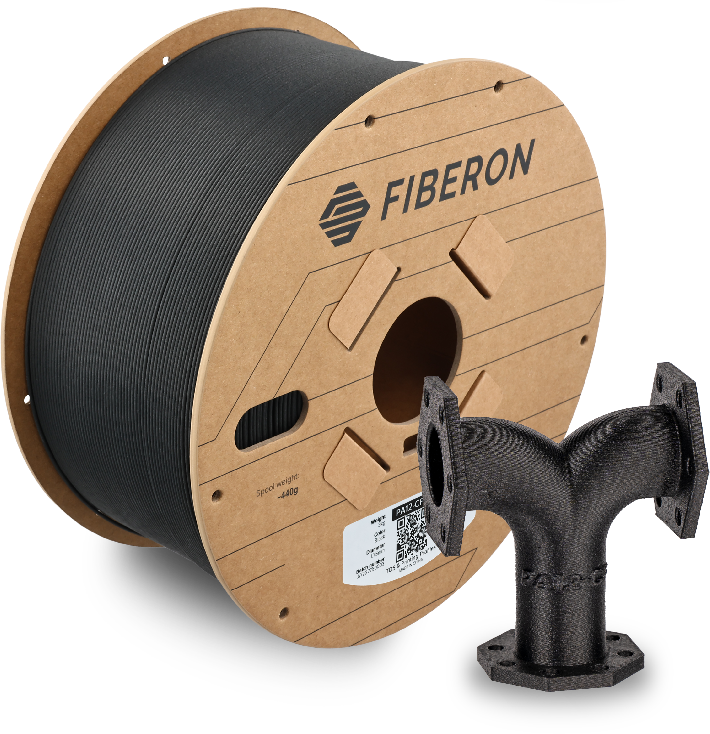 Fiberon™ PA12-CF10 de Polymaker es un filamento PA12 de alto rendimiento reforzado con un 10% de fibras de carbono y presenta una sensibilidad a la humedad significativamente reducida, lo que lo hace mucho más fácil de manipular, almacenar e imprimir.