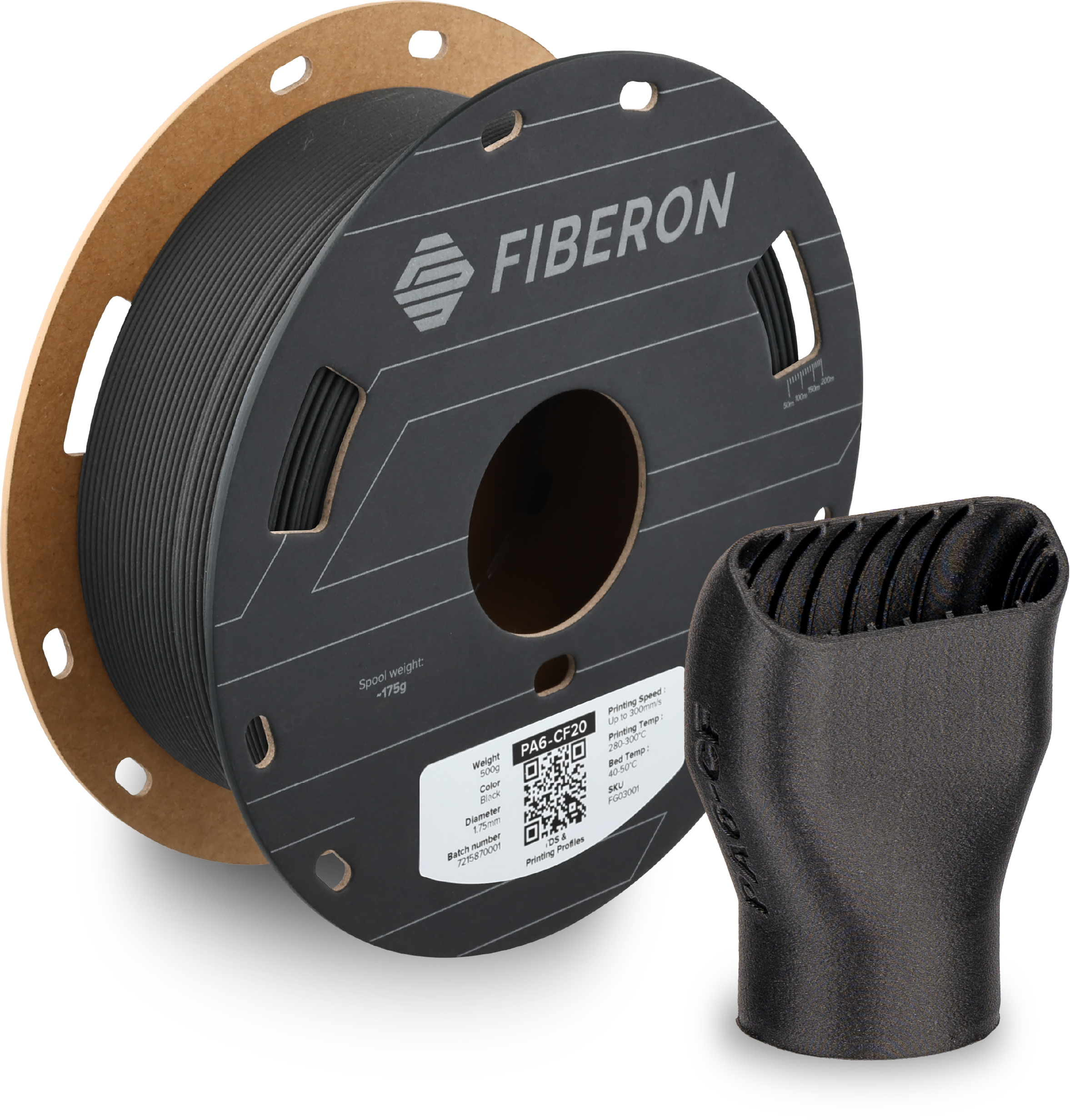 Polymaker Fiberon™ PA6-CF20 establece nuevos estándares en resistencia y durabilidad. Reforzado con un 20% de fibra de carbono, aporta rigidez, estabilidad y resistencia al calor excepcionales a tus proyectos de impresión 3D. La tecnología Fiber Adhesion™ garantiza una excelente adhesión de las capas y hace que PA6-CF20 sea la elección perfecta para aplicaciones que requieren máxima durabilidad.