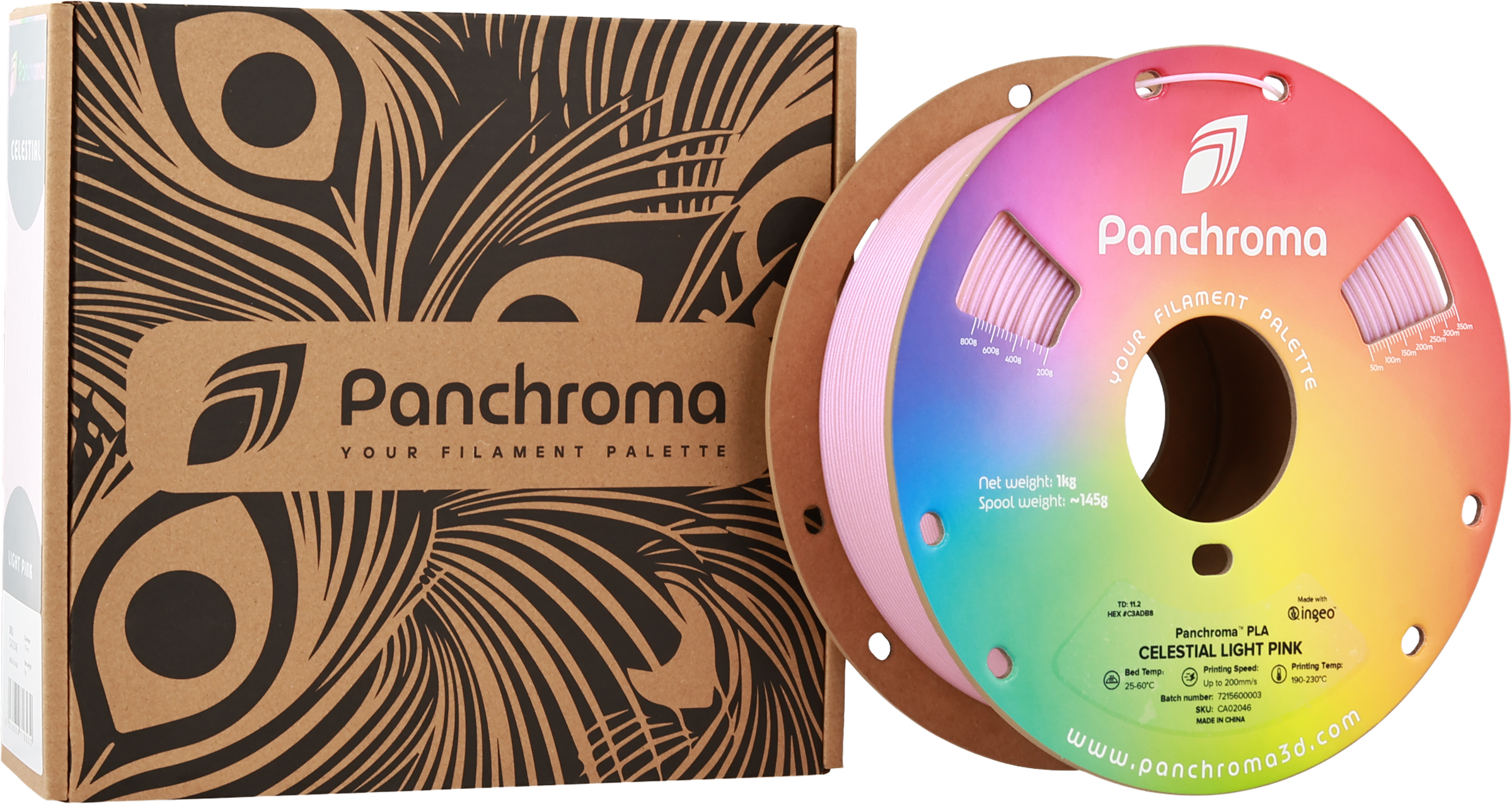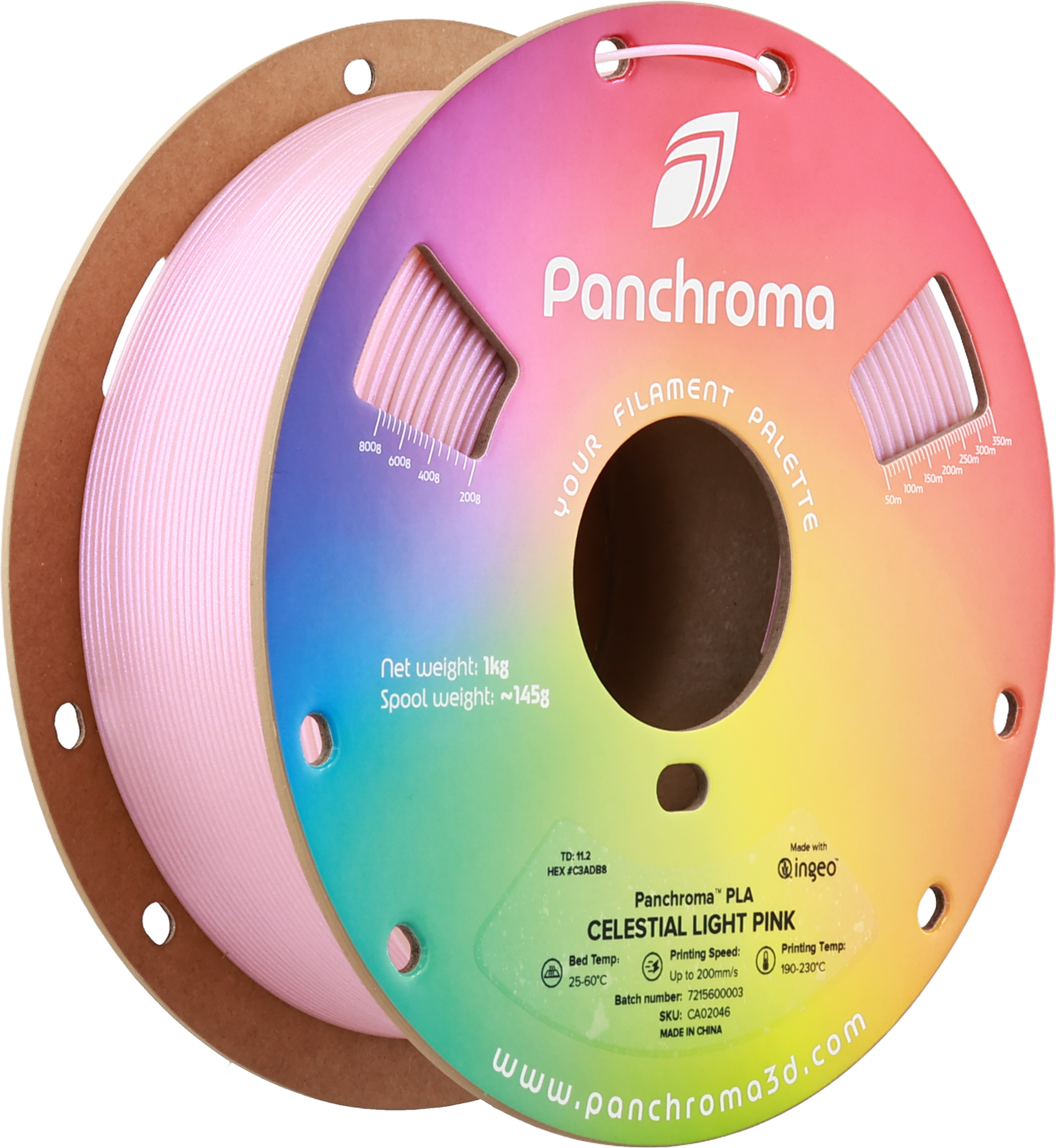Sumérgete en el fascinante mundo de la impresión 3D con Panchroma™ Celestial PLA de Polymaker. Este filamento único aporta a tus creaciones un toque mágico: un brillo pastel con delicados destellos que brillan con elegancia gracias a la ligera transparencia del material y confieren a los modelos una sugerente profundidad. El secreto de este extraordinario efecto reside en una mezcla especial de polvos muy finos que hacen que el material brille con toda su originalidad.