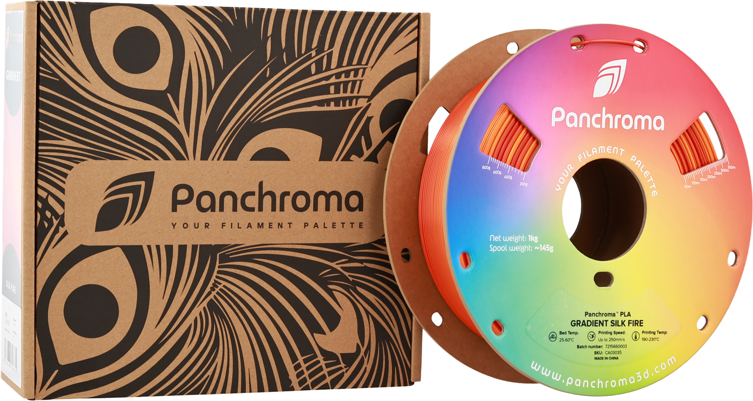 Con su fascinante efecto de gradiente de color, Panchroma™ PLA Gradient Silk de Polymaker confiere a cada proyecto de impresión un carácter único e inconfundible. Los delicados degradados de color y las transiciones perfectas entre colores crean un extraordinario acabado sedoso que brilla tanto con luz brillante como en entornos más tenues. Los tonos fluidos invitan a jugar con los efectos de iluminación y las perspectivas, estimulando la creatividad y fomentando diseños atrevidos y originales.