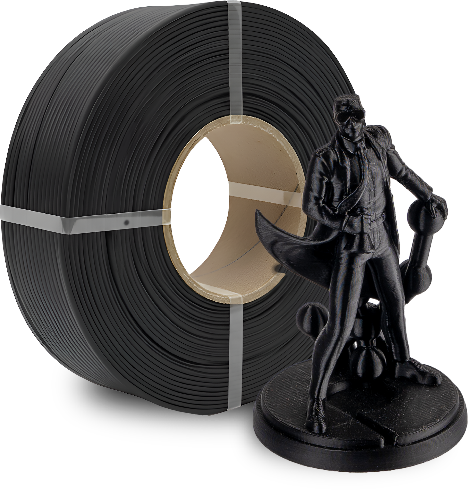 Las recargas Polymaker están hechas con filamento perfectamente enrollado y no tienen una bobina rígida. Están diseñadas para usarse con una bobina maestra reutilizable. Polymaker ofrece un modelo STL de su bobina maestra para que lo imprimas tú mismo (disponible en la sección de descargas o en MakerWorld ).