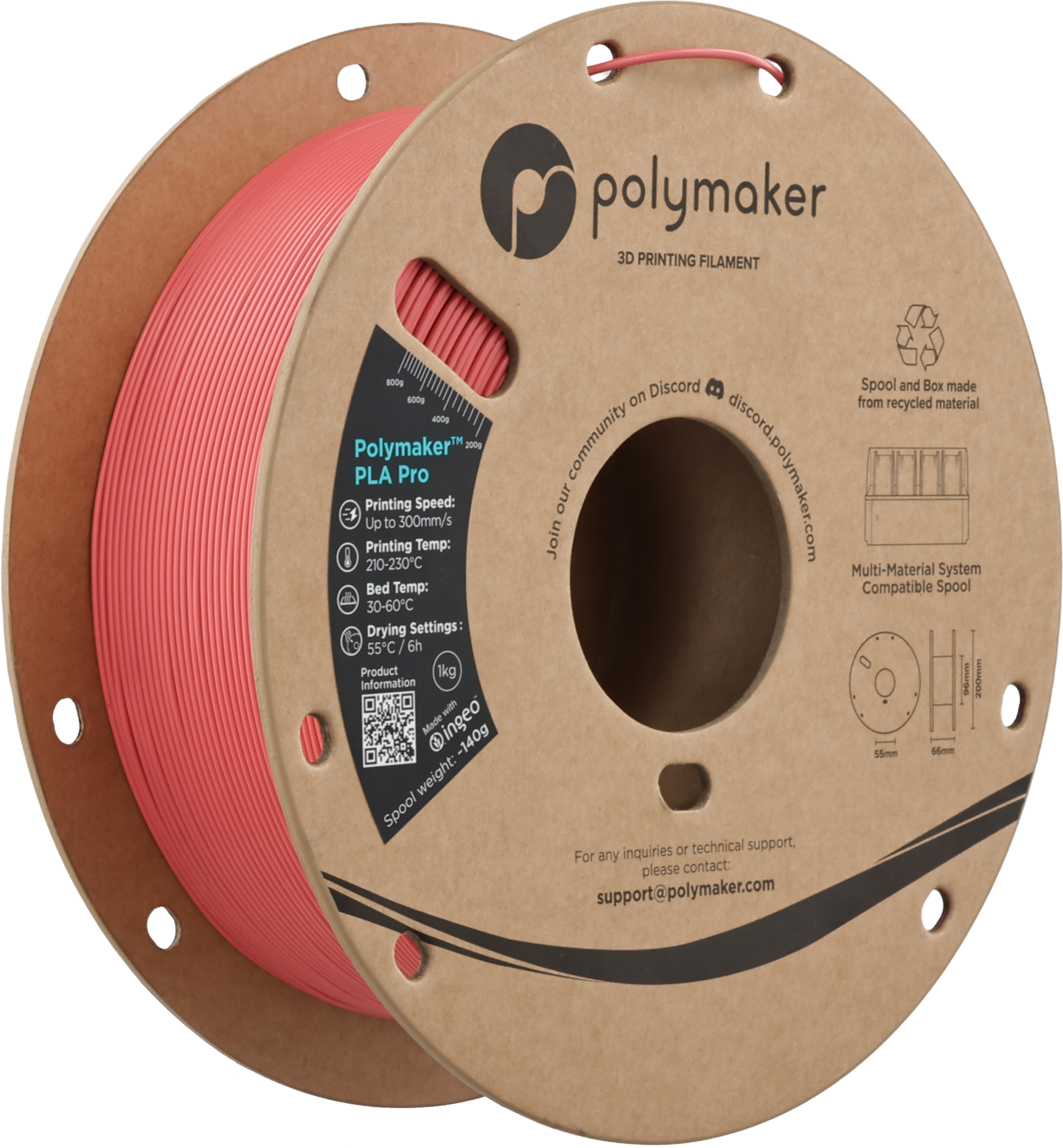 Tanto si eres principiante, maker o usuario profesional: con su fuerte adhesión de capa, reproducción precisa de detalles y amplia compatibilidad de materiales, Polymaker™ PLA Pro es la elección perfecta para cualquiera que busque un filamento PLA fiable, versátil y de alto rendimiento para su impresión 3D.