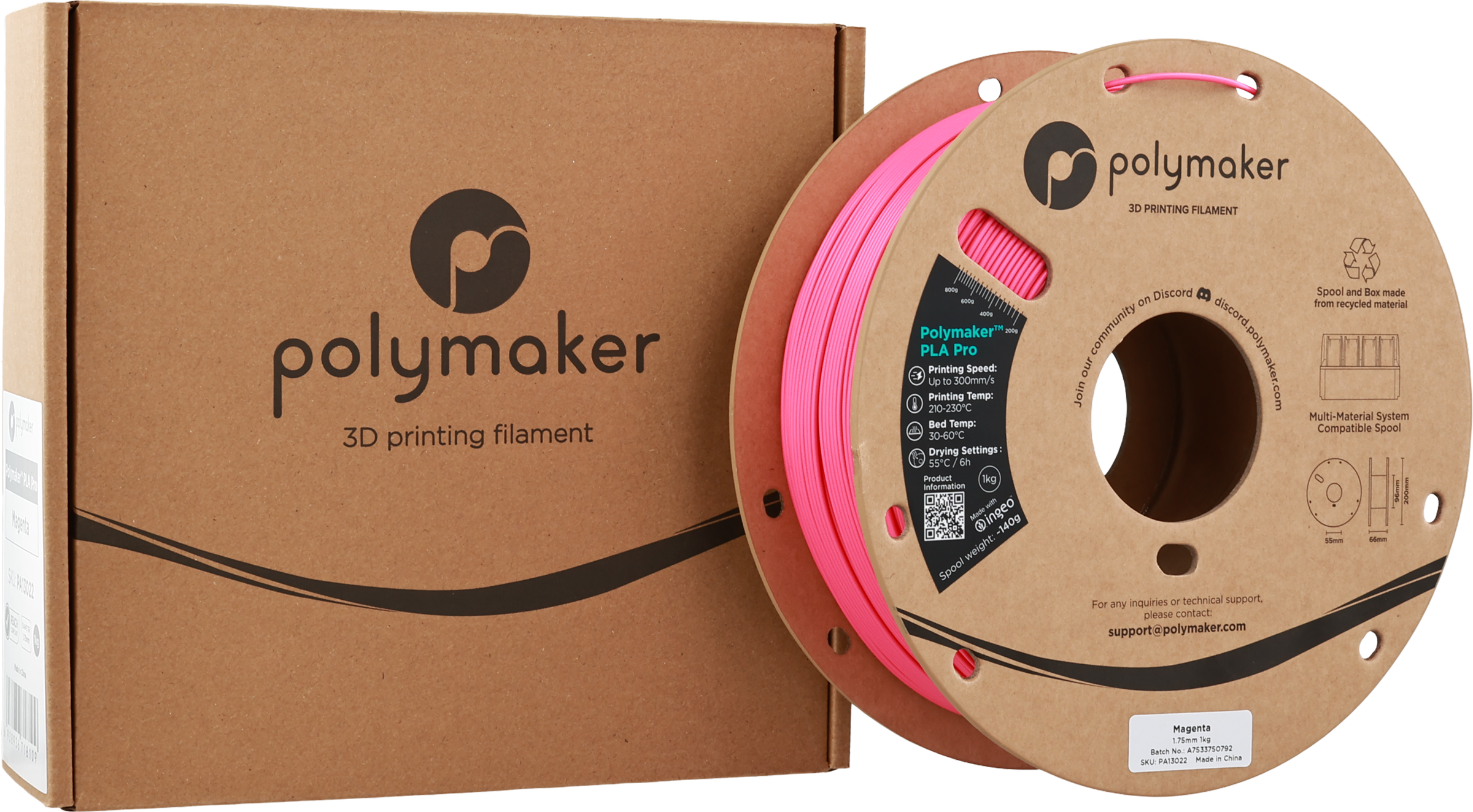 | Polymaker™ PLA Pro es el sucesor de PolySonic™ PLA Pro y PolyLite™ PLA Pro. Como formulación avanzada basada en PolySonic™ PLA Pro, ofrece un rendimiento mejorado en términos de resistencia, imprimibilidad y fiabilidad. |
