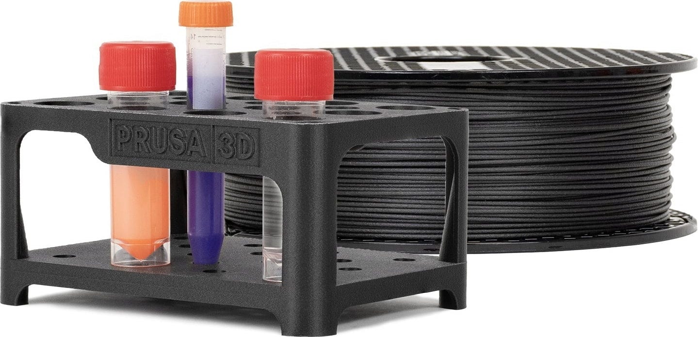 Prusa Prusament PP Carbon Fiber combina las ventajas del polipropileno con la estabilidad de la fibra de carbono, lo que da como resultado un filamento de alto rendimiento ideal para aplicaciones en las que se requiere un peso reducido y una gran resistencia química.
