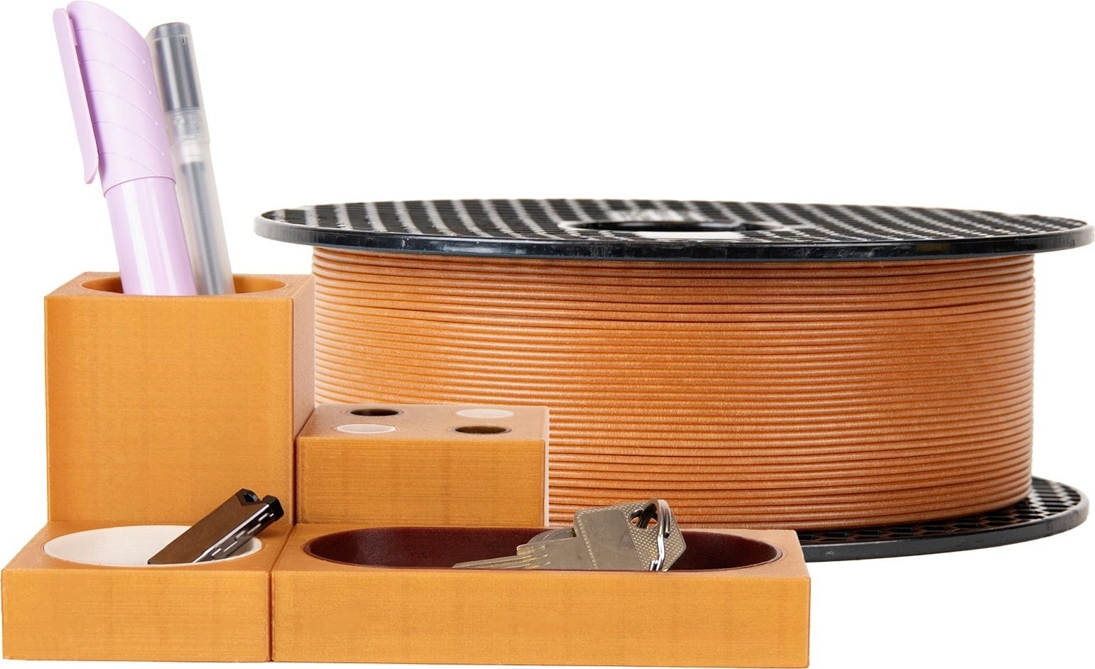 Durante la impresión, el material desprende un ligero aroma natural que recuerda su origen orgánico. El resultado son impresiones con un acabado mate estéticamente agradable y tonos delicados y terrosos, ideales para objetos de decoración, diseño y prototipos sostenibles.