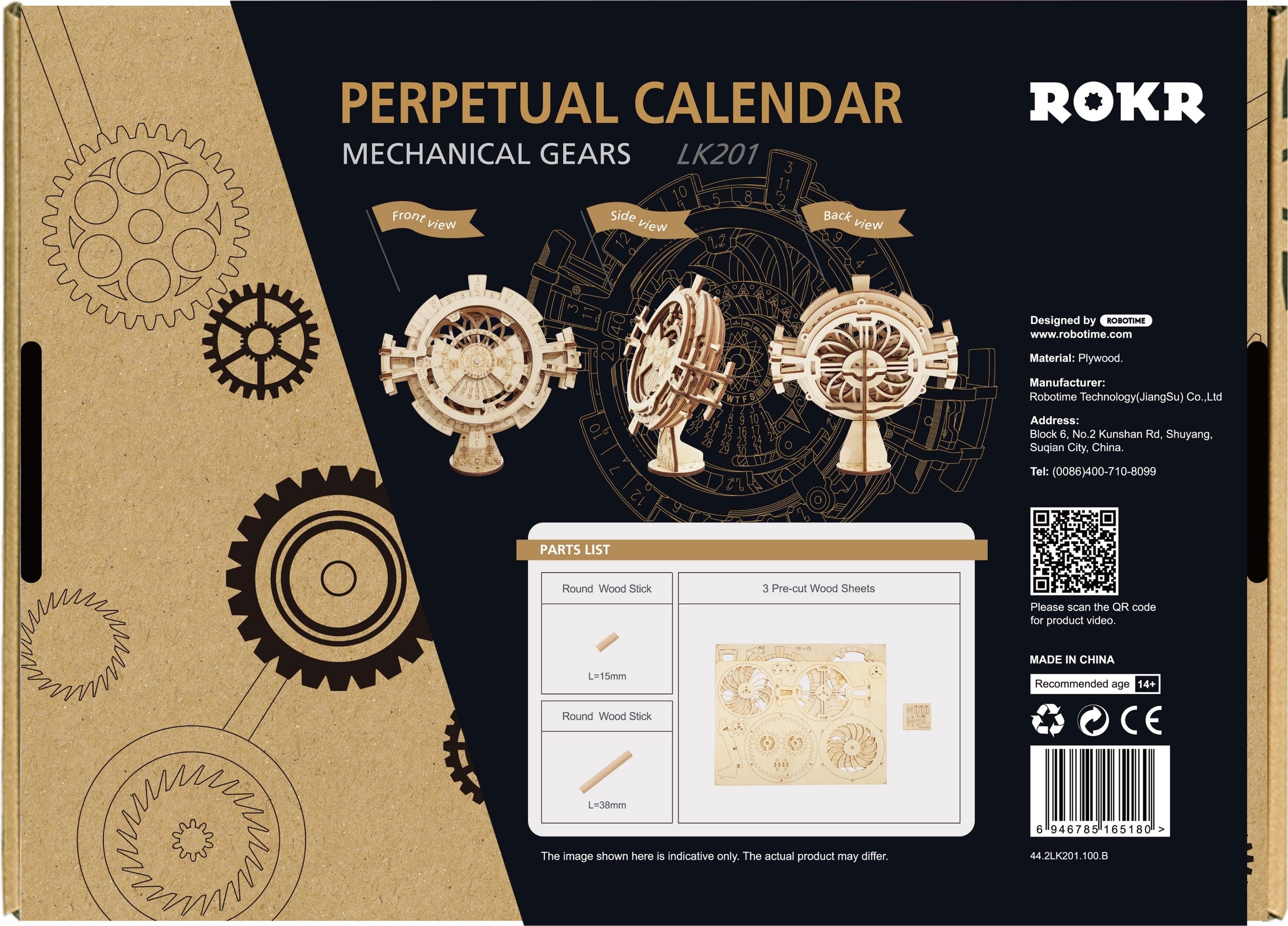 Algunas cosas no necesitan hacer ruido para dejar huella. El Perpetual Calendar ROKR es un calendario mecánico de sobremesa en formato de puzzle de madera en 3D que hace que el tiempo sea visible y tangible. A partir de componentes de madera cortados con precisión con láser nace un elegante objeto que le acompaña día tras día, de forma discreta y fiable, sin ningún tipo de electrónica.