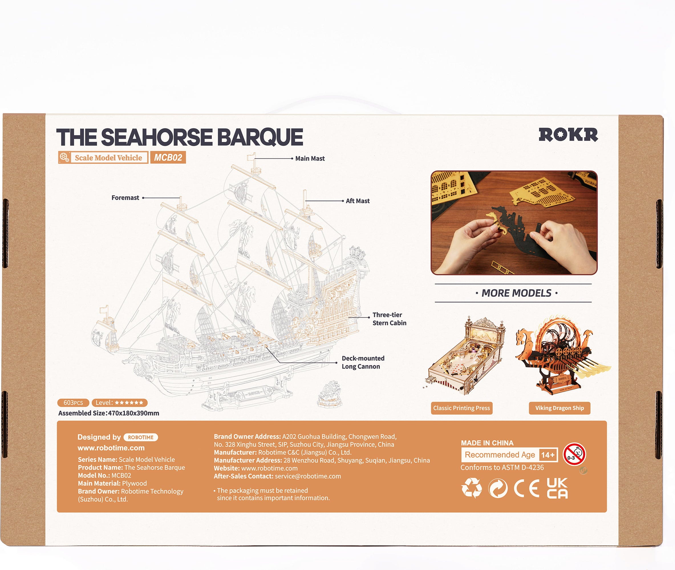 La niebla se posa en el agua. La madera cruje. Las velas se estiran con el viento. ROKR The Seahorse Barque no es un barco cualquiera, es una presencia. Un majestuoso puzzle de madera en 3D que te transporta a un oscuro mundo marítimo de poder, misterio e historia. Durante el montaje, pieza a pieza, nace un imponente barco de vela cuadrada que parece listo para zarpar en cualquier momento.