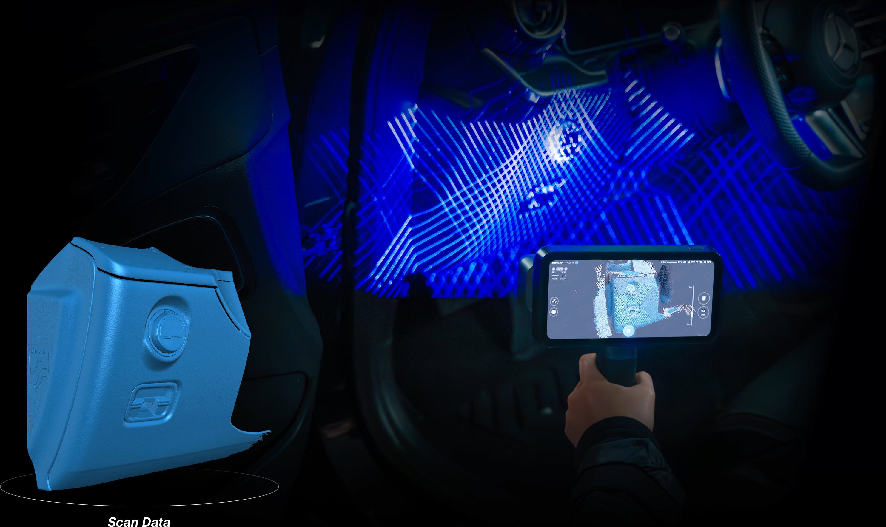 Un algoritmo de seguimiento especial también permite el escaneado láser sin marcadores, lo que reduce el trabajo de preparación y acelera significativamente el proceso de escaneado.