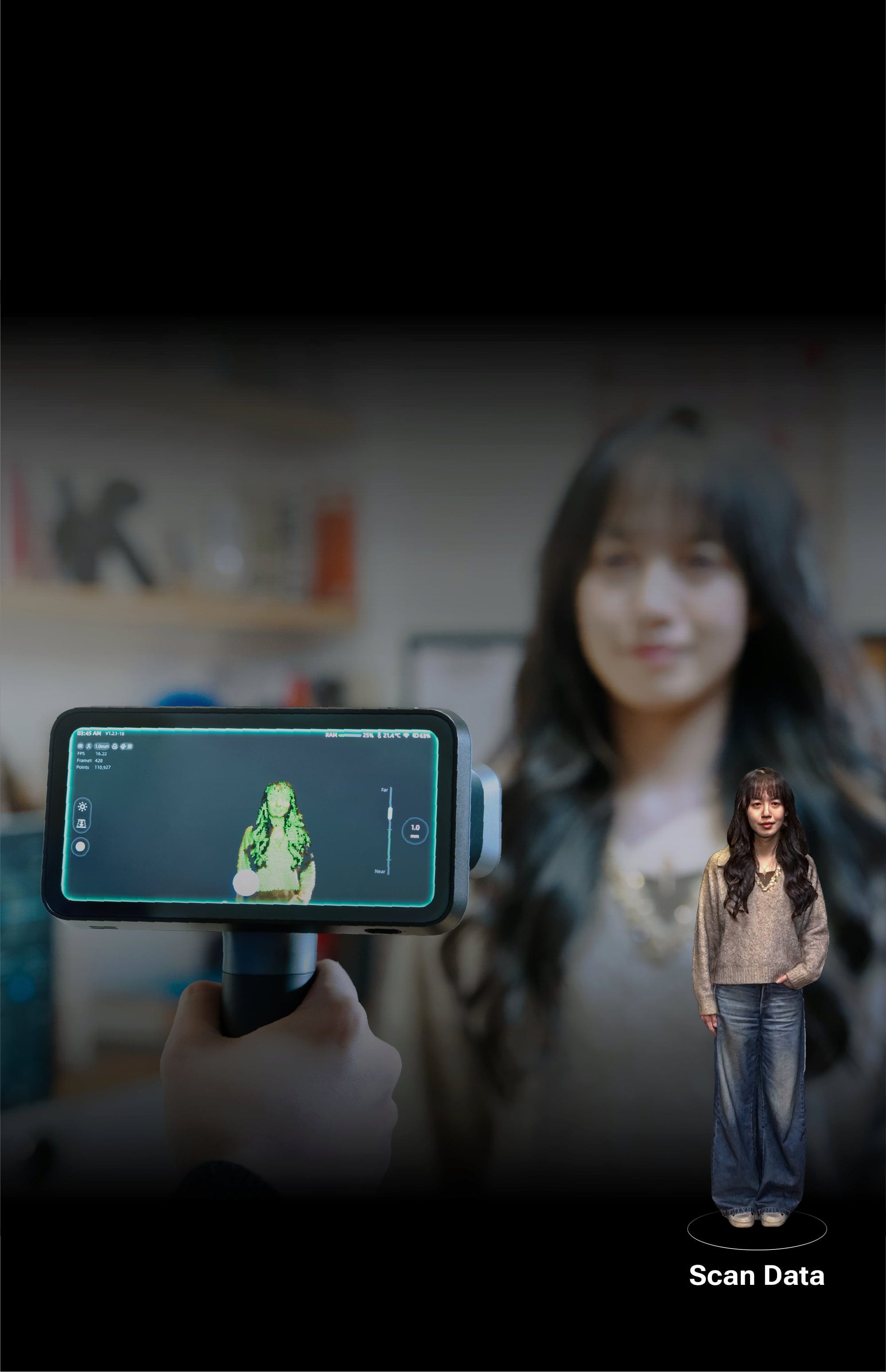La cámara en color de 5 MP integrada garantiza texturas detalladas y modelos 3D realistas. Esto hace que el escáner sea adecuado no sólo para aplicaciones técnicas, sino también para diseño, arte y contenido digital.
