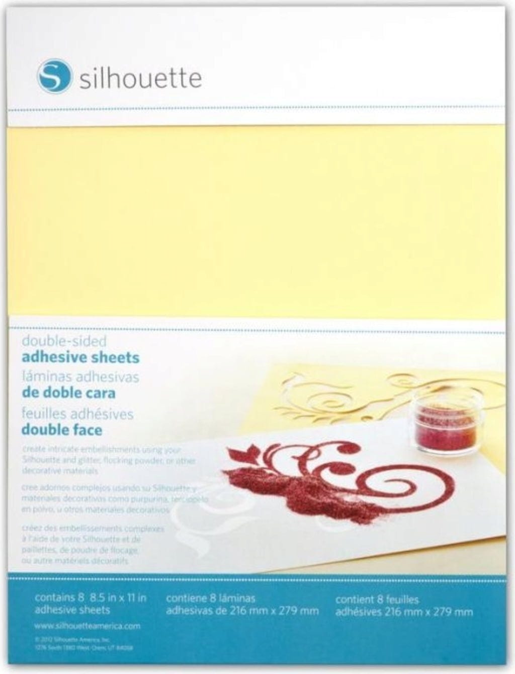 Con las Silhouette Double-Sided Adhesive Sheets, podrás aplicar con precisión materiales decorativos como purpurina, polvo flocado o polvo de relieve a tus proyectos. El material adhesivo de doble cara es ideal para crear diseños detallados con bordes limpios y claros.