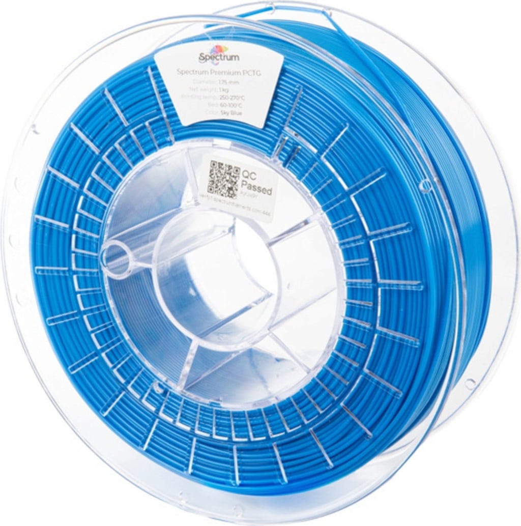 Premium PCTG de Spectrum es un copoliéster que tiene propiedades similares al PET-G y es, por tanto, una alternativa ideal. El filamento se caracteriza por su alta resistencia al impacto, estabilidad dimensional y baja contracción, así como por propiedades como la resistencia a temperaturas de hasta 76 °C, alta elasticidad y excelente resistencia química.