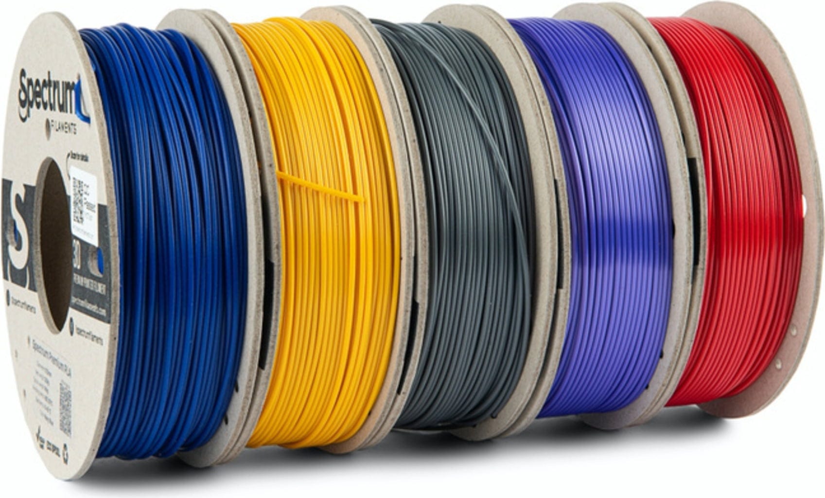 La impresión 3D depende de las propiedades adecuadas del material. Según el proyecto, la resistencia, la apariencia o la procesabilidad son cruciales, y ahí es precisamente donde entra en juego el Set de 5 Material Mix #1. Este set combina varios tipos de filamentos en un práctico surtido, lo que permite probar y utilizar diferentes materiales sin tener que comprar varias bobinas individuales. Es ideal para prototipado, componentes funcionales o proyectos que requieren diferentes propiedades mecánicas u ópticas. Todos los filamentos incluidos en el set Spectrum Material Mix #1 de 5 piezas impresionan por su calidad consistente, precisión dimensional fiable y extrusión uniforme. Esto garantiza resultados de impresión reproducibles en la mayoría de las impresoras 3D FDM/FFF.