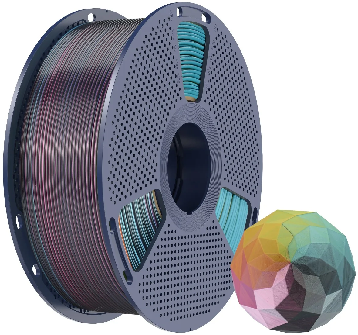 Este material PLA realza los detalles más finos de tu impresión 3D con su brillo sedoso y crea efectos impresionantes con cuatro colores que se mezclan. ¡Los tonos iridiscentes de 360° le dan a tus creaciones un aura mágica!
