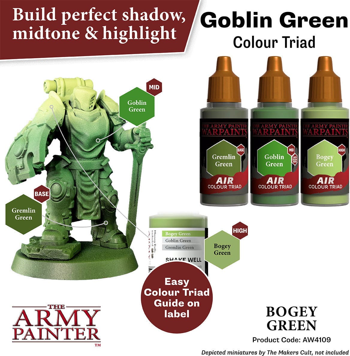 Un elemento distintivo es el sistema Triad: cada color forma parte de una combinación de base, tono medio y realce, lo que facilita la creación de reflejos naturales y contrastes marcados que hacen que las miniaturas destaquen en el campo de juego.